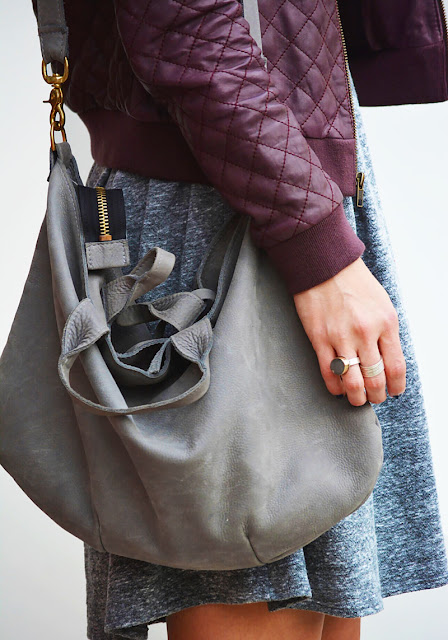 love this. great transition to fall look. The bomber jacket and all the grey is just perfection.